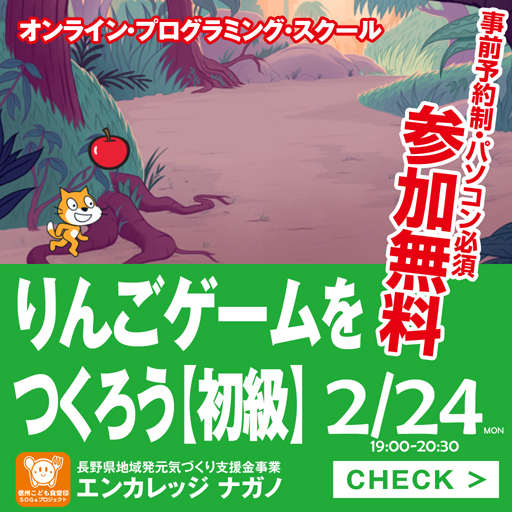 このゲームを通して、小学生でも簡単に使えるプログラミング言語Scratchを学ぶことができます。